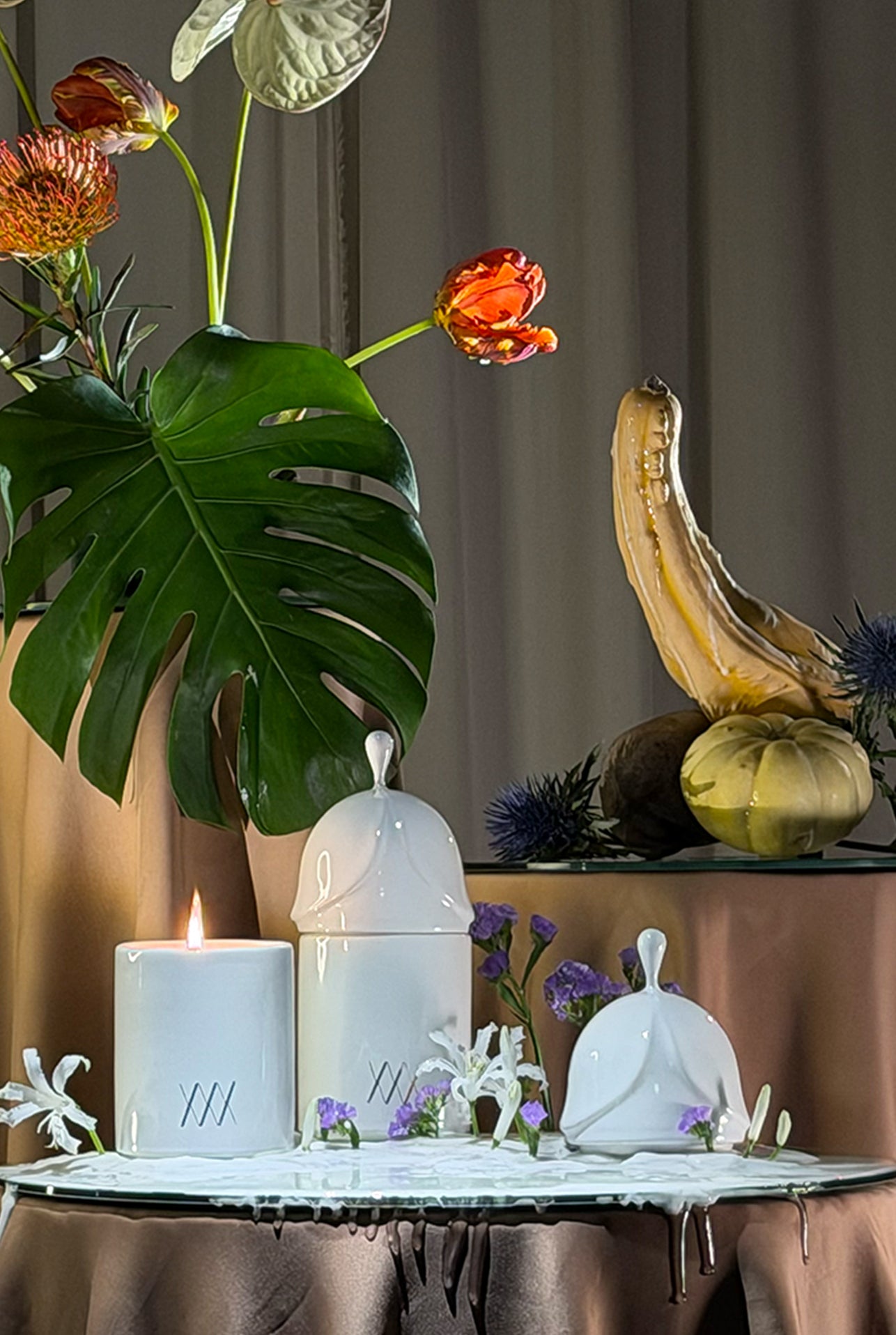 Candela in ceramica con coperchio glande e goccia. Decoro logo XXX in oro zecchino. La cera MyVolgare è completamente naturale e può quindi presentare leggere variazioni in presenza di alte temperature. Per preservare la qualità e la fragranza si consiglia di evitare sbalzi termici.