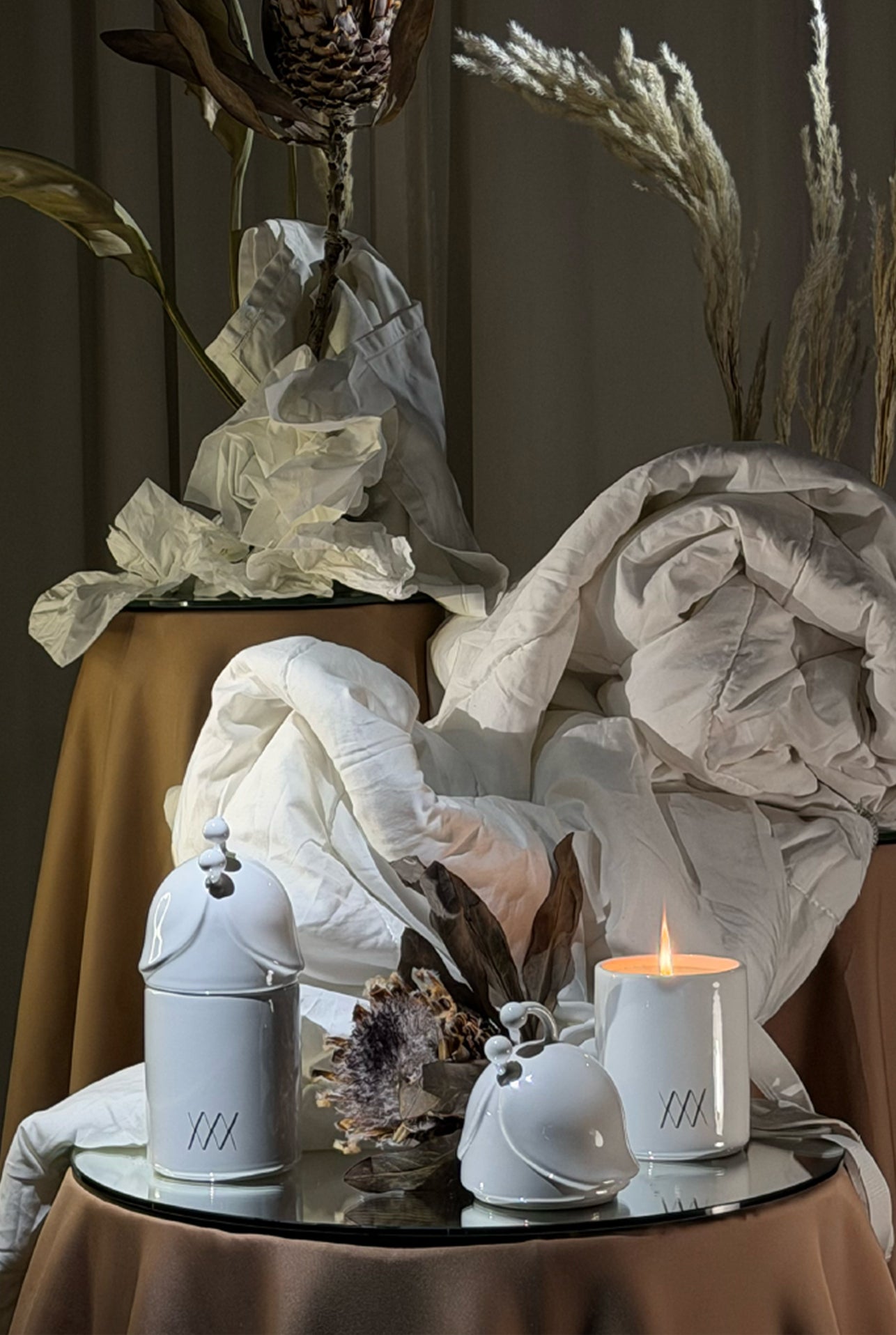 Candela in ceramica con coperchio glande e Price Albert. Decoro logo XXX in oro zecchino. La cera MyVolgare è completamente naturale e può quindi presentare leggere variazioni in presenza di alte temperature. Per preservare la qualità e la fragranza si consiglia di evitare sbalzi termici.